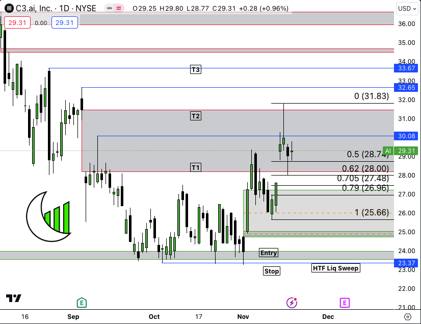 C3.Ai, Inc. Class A Common Stock (NYSE:AI) Weekly Target #2 locked in! I’m going to be holding the rest beyond that T3, for the ultimate destination of 48.87, where the Weekly Mando Model would complete. Great trade!