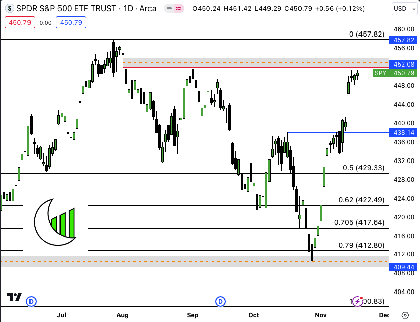 SPDR S&P 500 (NYSE:SPY) Daily I see the desire to complete the Mando Model at 457.82. One bearish volume imbalance in the way before doing so.