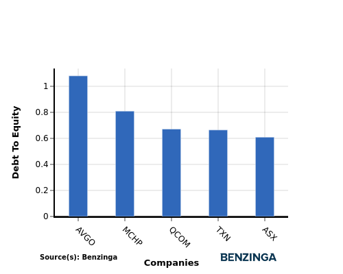 By considering the Debt-to-Equity ratio, Broadcom can be compared to its top 4 peers, leading to the following observations: