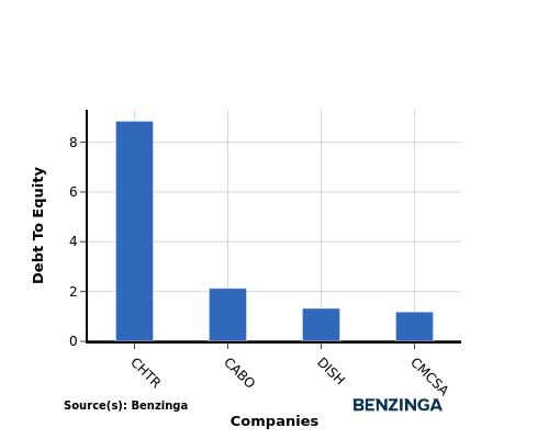 By evaluating Charter Communications against its top 4 peers in terms of the Debt-to-Equity ratio, the following observations arise: