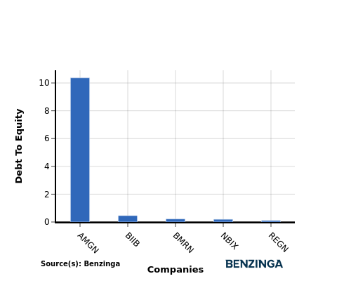 When examining Regeneron Pharmaceuticals in comparison to its top 4 peers with respect to the Debt-to-Equity ratio, the following information becomes apparent: