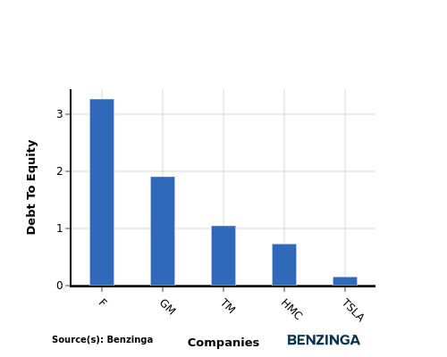 In terms of the Debt-to-Equity ratio, Tesla stands in comparison with its top 4 peers, leading to the following comparisons: