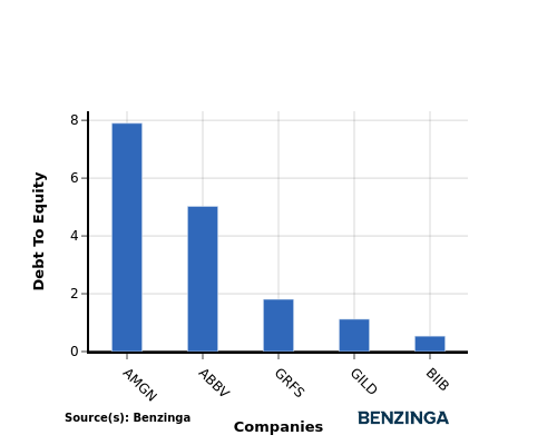 In terms of the Debt-to-Equity ratio, Amgen stands in comparison with its top 4 peers, leading to the following comparisons: