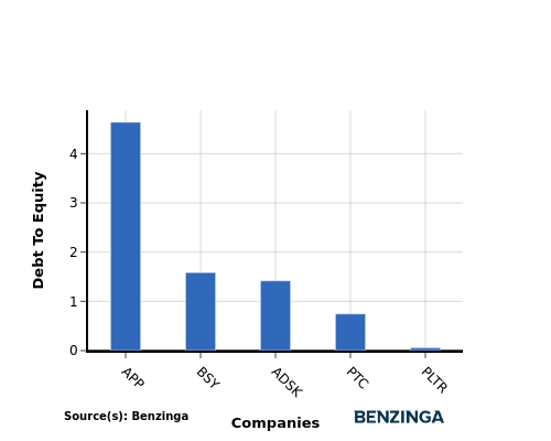When assessing Palantir Technologies against its top 4 peers using the Debt-to-Equity ratio, the following comparisons can be made: