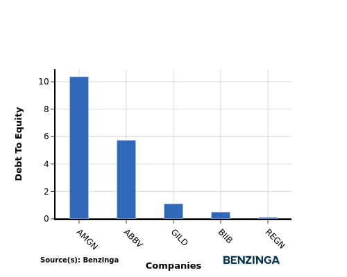 In terms of the Debt-to-Equity ratio, Regeneron Pharmaceuticals stands in comparison with its top 4 peers, leading to the following comparisons:
