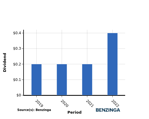 The company demonstrated a positive dividend growth pattern from 2019 to 2022, with the dividend per share rising from $0.20 to $0.40. This signifies the company’s commitment to consistently increasing shareholder dividends.