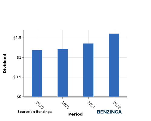As you can see, from 2019 to 2022, investors saw an average increase in the company’s dividend per share, rising from $1.19 in 2019 to $1.61 in 2022. This is good for investors because it shows that the company has steadily returned more capital back to their shareholders and it could mean that they are planning to continue increasing dividends.