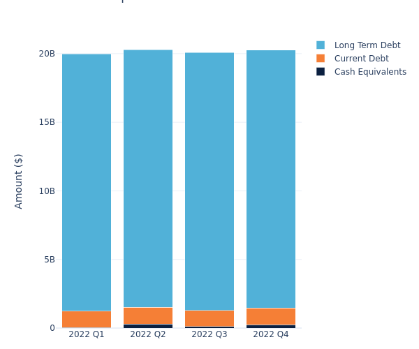According to the MPLX’s most recent financial statement as reported on February 23, 2023, total debt is at $20.03 billion, with $18.81 billion in long-term debt and $1.23 billion in current debt. Adjusting for $238.00 million in cash-equivalents, the company has a net debt of $19.80 billion.