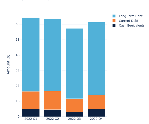 According to the Nasdaq’s most recent financial statement as reported on February 23, 2023, total debt is at $5.64 billion, with $4.74 billion in long-term debt and $907.00 million in current debt. Adjusting for $502.00 million in cash-equivalents, the company has a net debt of $5.14 billion.