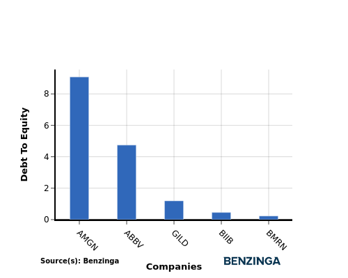 In light of the Debt-to-Equity ratio, a comparison between Amgen and its top 4 peers reveals the following information: