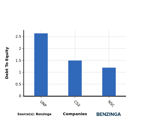 By considering the Debt-to-Equity ratio, CSX can be compared to its top 4 peers, leading to the following observations: