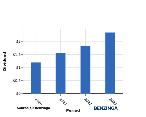From 2020 to 2023, the company’s dividend per share showed a positive trend, increasing steadily from $1.20 in 2020 to $2.35 in 2023. This demonstrates the company’s commitment to rewarding shareholders by consistently raising dividends.