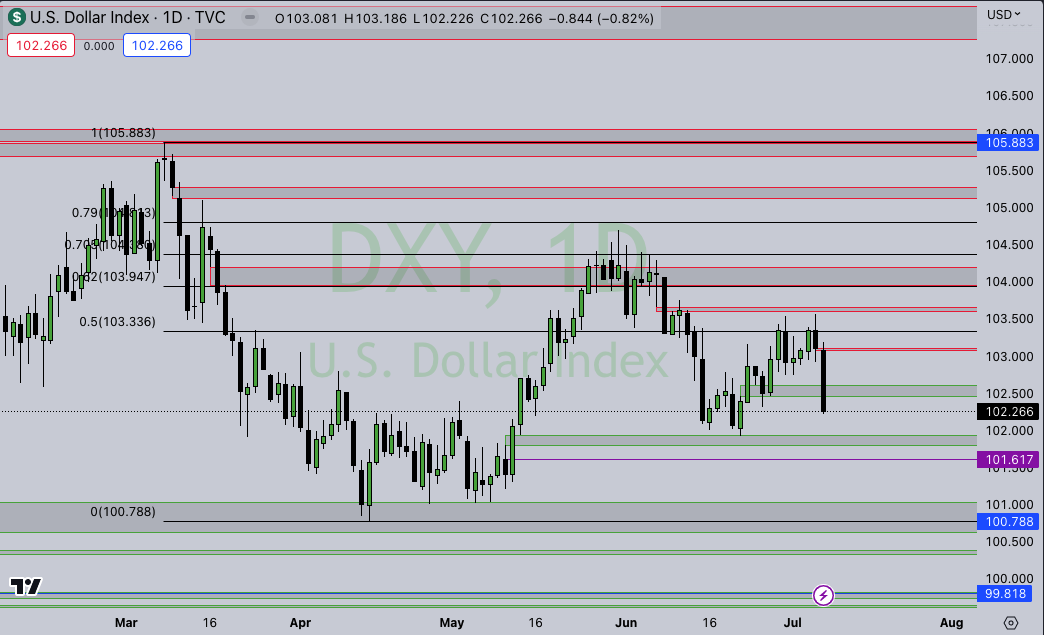 The one thing throwing in a major wrench for me this week is DXY. The dollar looks pretty bearish, with a nasty candle being put in on Friday, slicing through support. Last week, the dollar rejected the 50% level of the current range again, also setting lower highs on the daily timeframe. Without a strong bounce back Monday, DXY can set up a bearish imbalance for more downside.