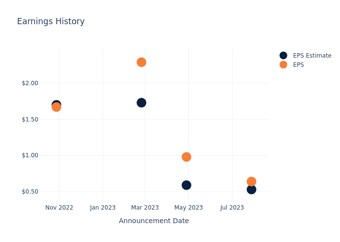Last quarter the company beat EPS by $0.11, which was followed by a 0.0% drop in the share price the next day.