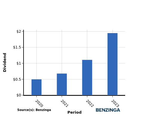 The company demonstrated a positive dividend growth pattern from 2020 to 2023, with the dividend per share rising from $0.50 to $1.95. This signifies the company’s commitment to consistently increasing shareholder dividends.