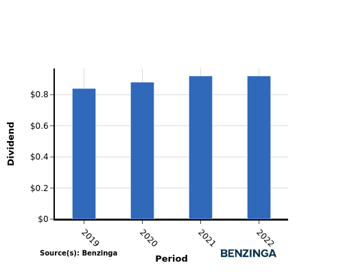 The company demonstrated a positive dividend growth pattern from 2019 to 2022, with the dividend per share rising from $0.84 to $0.92. This signifies the company’s commitment to consistently increasing shareholder dividends.