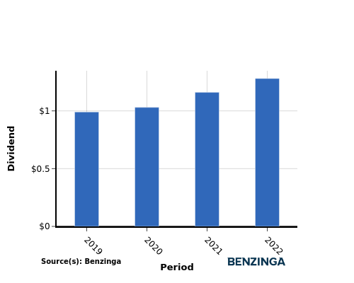 During the period of 2019 to 2022, the company experienced a notable growth in its dividend per share. The dividend per share increased from $0.99 to $1.28, reflecting the company’s focus on providing greater returns to its shareholders.