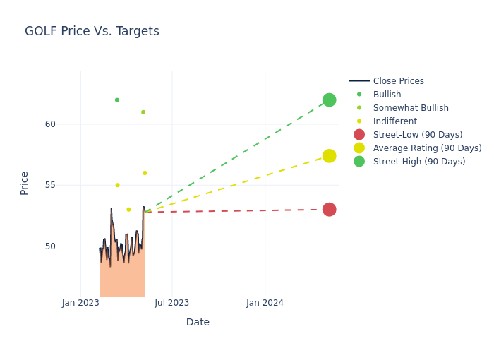 These 7 analysts have an average price target of $56.29 versus the current price of Acushnet Hldgs at $53.04, implying upside.