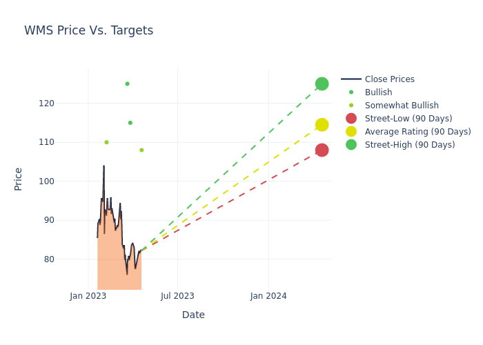 In the last 3 months, 5 analysts have offered 12-month price targets for Advanced Drainage Systems. The company has an average price target of $114.6 with a high of $125.00 and a low of $108.00.