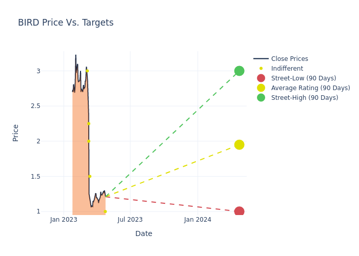 These 6 analysts have an average price target of $2.29 versus the current price of Allbirds at $1.2, implying upside.
