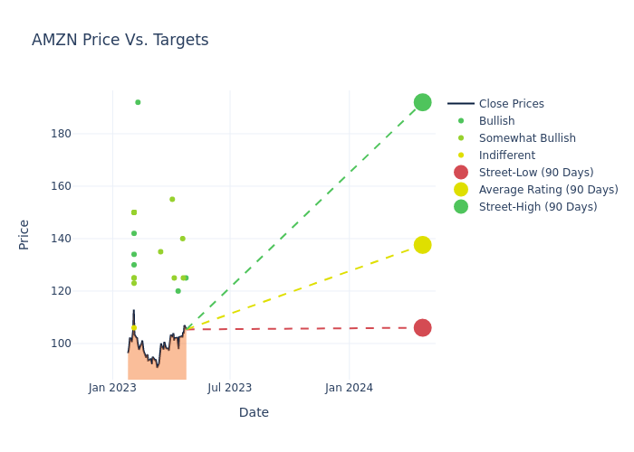 In the last 3 months, 31 analysts have offered 12-month price targets for Amazon.com. The company has an average price target of $137.03 with a high of $192.00 and a low of $106.00.