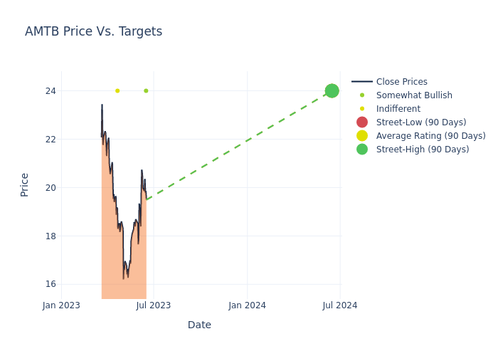 In the last 3 months, 4 analysts have offered 12-month price targets for Amerant Bancorp. The company has an average price target of $25.5 with a high of $28.00 and a low of $24.00.