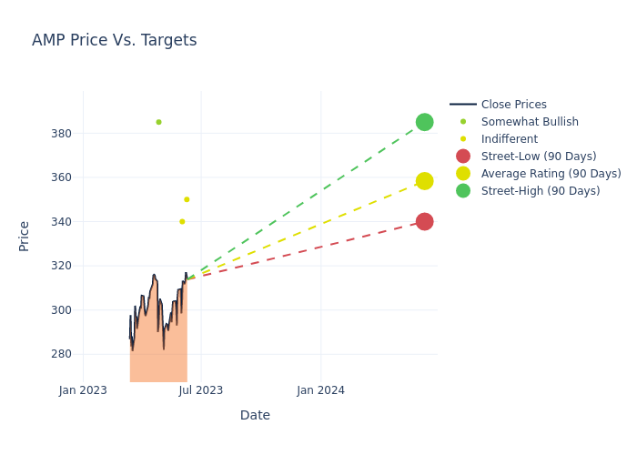 These 4 analysts have an average price target of $353.25 versus the current price of Ameriprise Finl at $313.8342, implying upside.