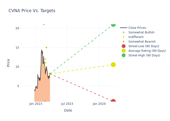 Within the last quarter, Carvana (NYSE:CVNA) has observed the following analyst ratings: