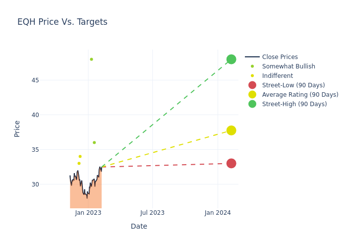 According to 4 analyst offering 12-month price targets in the last 3 months, Equitable Holdings has an average price target of $37.75 with a high of $48.00 and a low of $33.00.