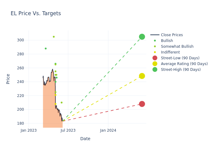 In the last 3 months, 20 analysts have offered 12-month price targets for Estee Lauder Cos. The company has an average price target of $259.2 with a high of $320.00 and a low of $208.00.