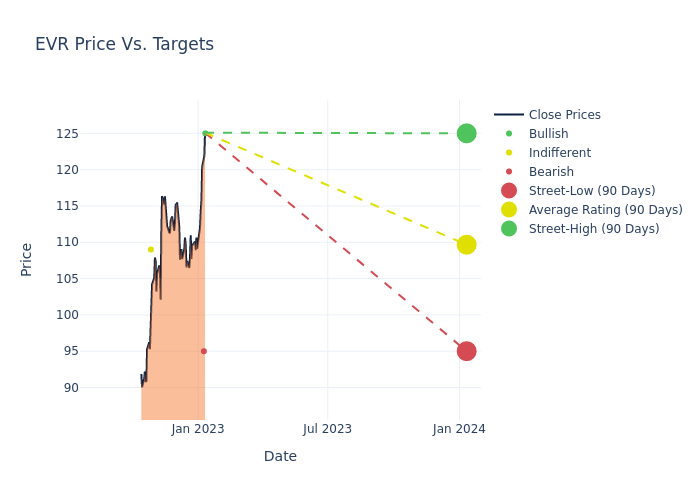 These 4 analysts have an average price target of $107.5 versus the current price of Evercore at $125.1, implying downside.