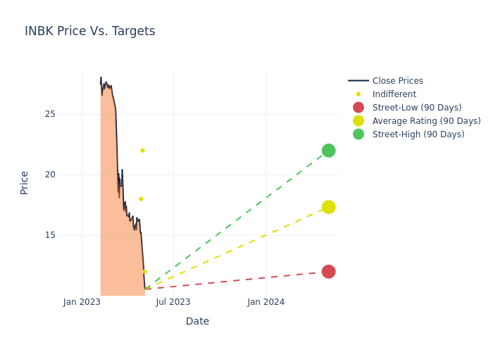 In the last 3 months, 4 analysts have offered 12-month price targets for First Internet. The company has an average price target of $19.75 with a high of $27.00 and a low of $12.00.