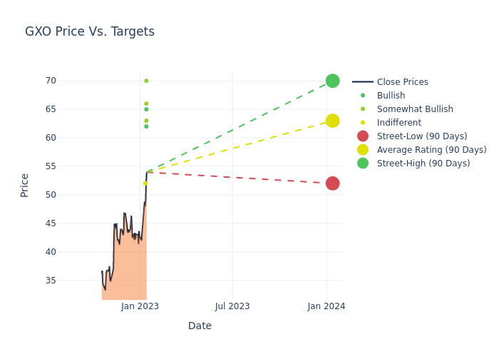 According to 11 analyst offering 12-month price targets in the last 3 months, GXO Logistics has an average price target of $62.64 with a high of $70.00 and a low of $52.00.