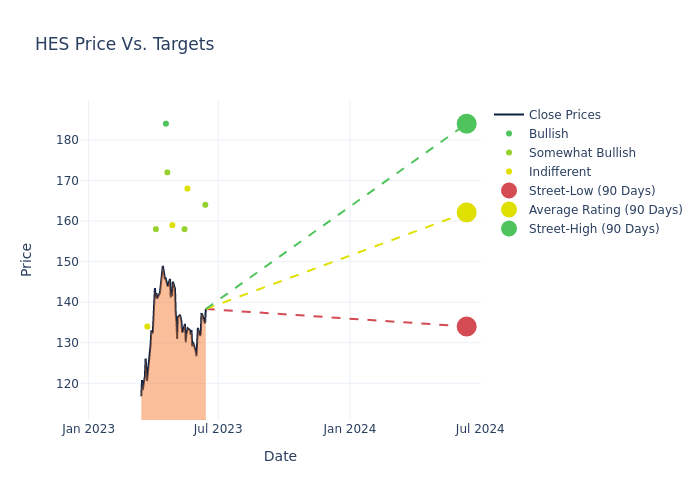 In the last 3 months, 12 analysts have offered 12-month price targets for Hess. The company has an average price target of $160.58 with a high of $184.00 and a low of $134.00.