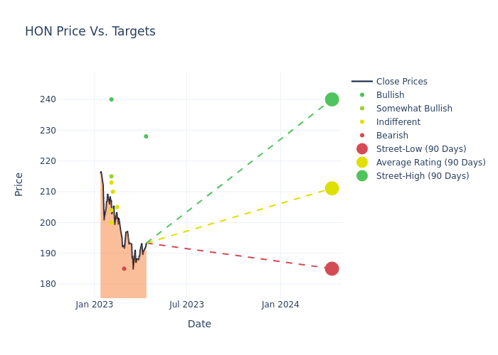 These 10 analysts have an average price target of $210.9 versus the current price of Honeywell Intl at $193.325, implying upside.