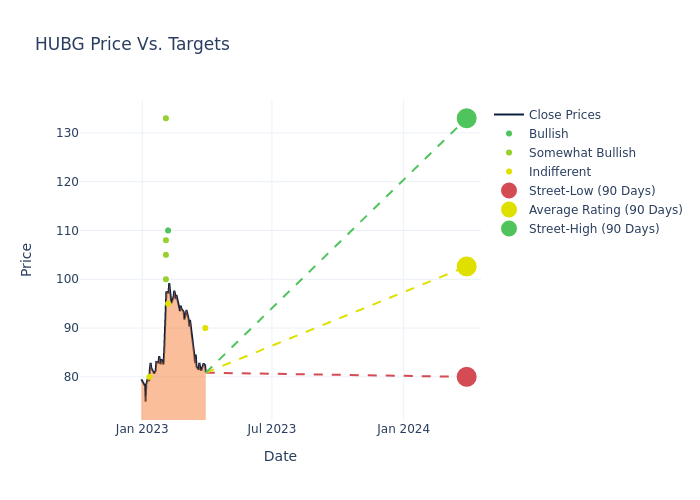 According to 12 analyst offering 12-month price targets in the last 3 months, Hub Group has an average price target of $98.83 with a high of $133.00 and a low of $80.00.