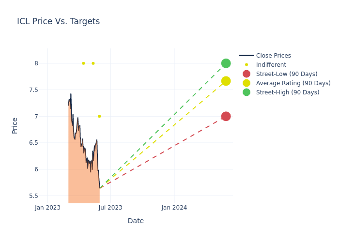 According to 4 analyst offering 12-month price targets in the last 3 months, ICL Group has an average price target of $7.62 with a high of $8.00 and a low of $7.00.