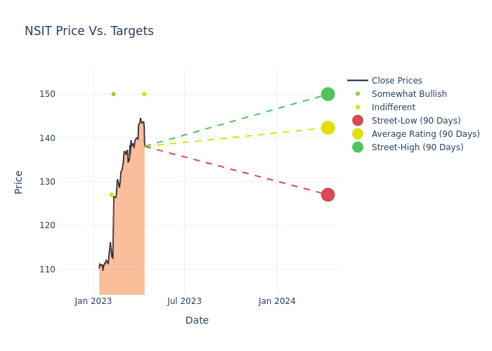 In the last 3 months, 4 analysts have offered 12-month price targets for Insight Enterprises. The company has an average price target of $144.25 with a high of $150.00 and a low of $127.00.