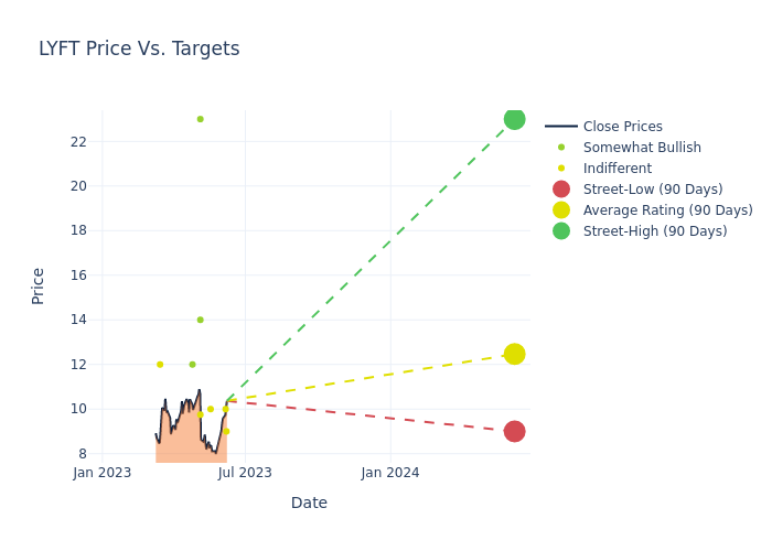 In the last 3 months, 12 analysts have offered 12-month price targets for Lyft. The company has an average price target of $12.94 with a high of $23.00 and a low of $9.00.