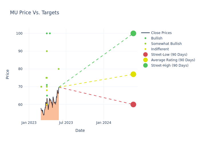 In the last 3 months, 13 analysts have offered 12-month price targets for Micron Technology. The company has an average price target of $76.23 with a high of $100.00 and a low of $60.00.
