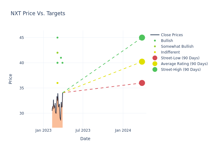 In the last 3 months, 10 analysts have offered 12-month price targets for NEXTracker. The company has an average price target of $39.8 with a high of $45.00 and a low of $36.00.
