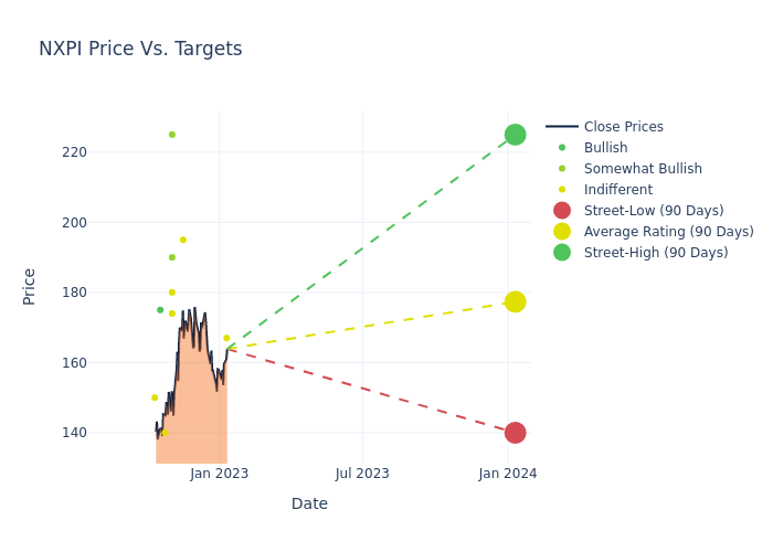 In the last 3 months, 8 analysts have offered 12-month price targets for NXP Semiconductors. The company has an average price target of $180.75 with a high of $225.00 and a low of $140.00.