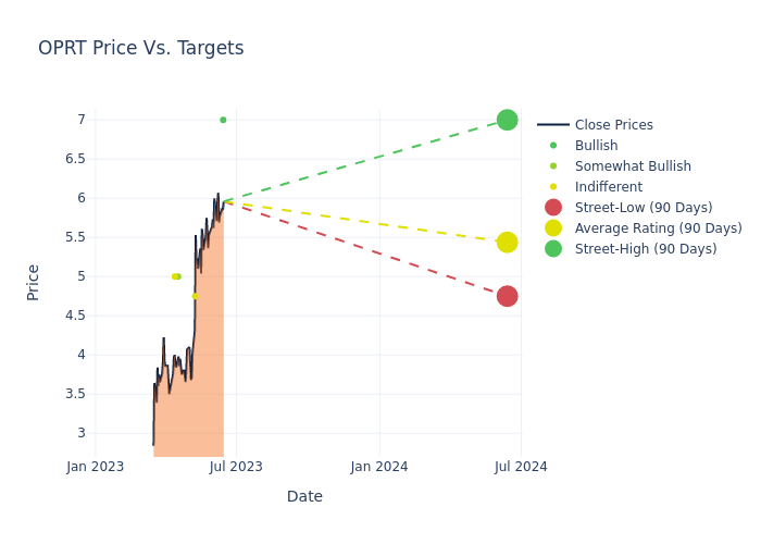 In the last 3 months, 4 analysts have offered 12-month price targets for Oportun Financial. The company has an average price target of $5.44 with a high of $7.00 and a low of $4.75.