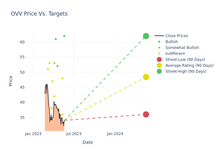 In the last 3 months, 17 analysts have offered 12-month price targets for Ovintiv. The company has an average price target of $50.18 with a high of $64.00 and a low of $36.00.