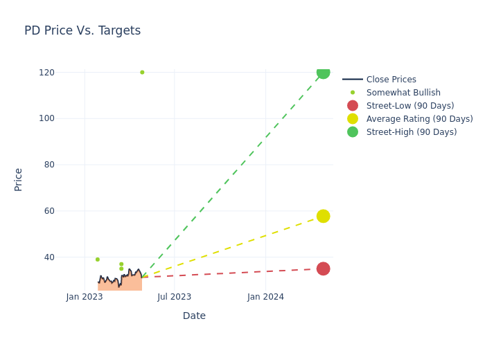 According to 6 analyst offering 12-month price targets in the last 3 months, PagerDuty has an average price target of $49.17 with a high of $120.00 and a low of $32.00.