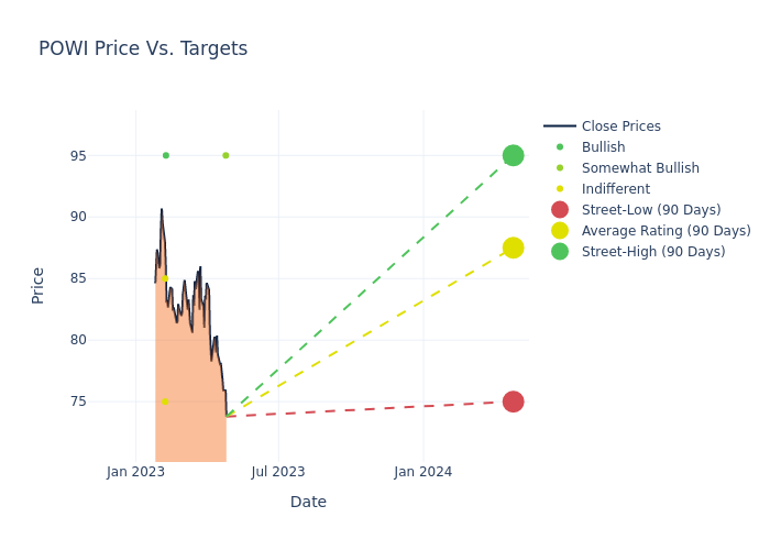 According to 4 analyst offering 12-month price targets in the last 3 months, Power Integrations has an average price target of $87.5 with a high of $95.00 and a low of $75.00.