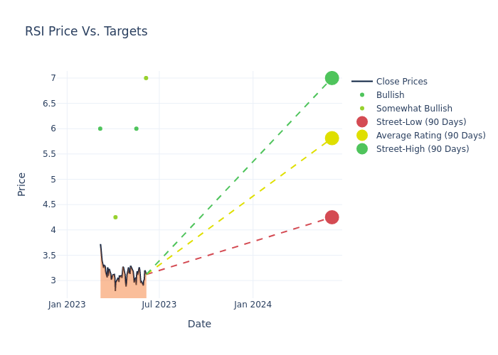 In the last 3 months, 6 analysts have offered 12-month price targets for Rush Street Interactive. The company has an average price target of $6.88 with a high of $8.00 and a low of $4.25.