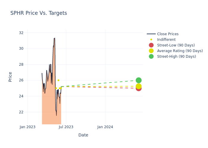 These 4 analysts have an average price target of $25.25 versus the current price of Sphere Entertainment at $24.97, implying upside.