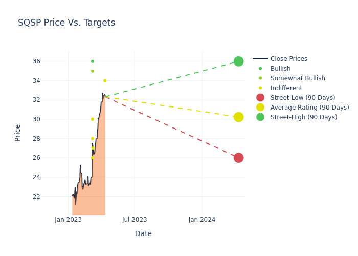 In the last 3 months, 9 analysts have offered 12-month price targets for Squarespace. The company has an average price target of $30.22 with a high of $36.00 and a low of $26.00.