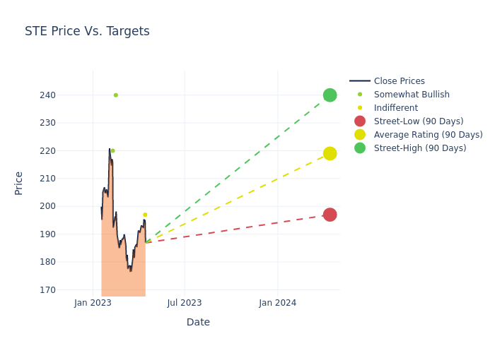 Steris (NYSE:STE) has observed the following analyst ratings within the last quarter: